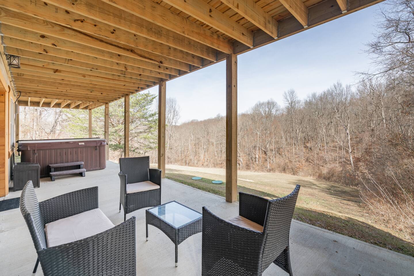 Welcome to The Madison, where Hocking Hills meets modern convenience. Available for cozy memory-making and quality time in nature. Enjoy: 3-Level Chalet: boasts scenic tree line views Nature-Inspired Comfort: tucked away for privacy Relaxing Amenities: includes a gas fireplace, a hot tub, and a fire pit Outdoor Living: enjoy a 32ft covered wraparound porch Connectivity: equipped with WiFi for streaming and communication Nearby Attractions: conveniently located near trails and local attractions