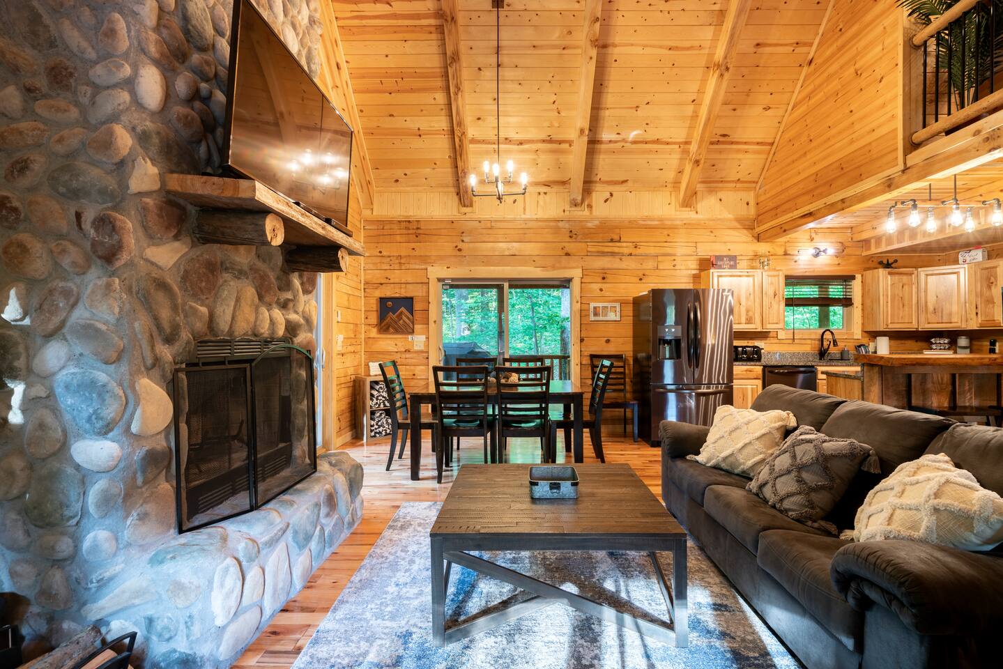 Welcome to Hocking Hills and Paradise Falls, a spacious chalet-style cabin offering the rare combo of comfort, convenience, and cleanliness! Paradise Falls is the perfect setting for connecting where it counts and disconnecting from what doesn't. COMFORT: Paradise Falls can sleep 12 guests, offering three private bedrooms and extra sleeping in the large downstairs area. This allows the cabin to comfortably sleep 12 guests. Paradise Falls also has a large covered hot tub, fire pit and indoor wood burning fireplace, cable television, WiFi, and flat screen TVs in both bedrooms and common areas. We provide YouTube TV (w/Sunday NFL Ticket!), Hulu, and Disney+. CONVENIENCE: Located in the heart of the Hocking Hills region. JUST 5 MINUTES TO ASH CAVE! Easy, quick access to other favorites, including Old Man's Cave, Conkle's Hollow, Cedar Falls, and more! Also convenient for Hocking Hills activities, such as zip lining, trail riding, rock climbing, and many others! CLEANLINESS: We employ local professional cleaners who understand that our guests want to immediately settle in and feel confident that the cabin is up to their standards. Paradise Falls balances the desired seclusion and proximity to the trails, caves, and waterfalls that many guests seek. You won't have to see another person during your stay if that's your preference, but can also quickly access the best hikes that Hocking Hills State Park offers (Old Man's Cave, Ash Cave, Conkle's Hollow are all within a 5-15 min drive). Whether you're coming to play, coming to relax in the Hocking Hills countryside, or coming to explore, Paradise Falls chalet-style cabin has you covered! A few requests for booking guests: - Guest making reservation is responsible for other guests on property and liable for damages and/or rules violations - Despite being animal lovers and pet owners ourselves, pets are not allowed at the cabin. - The cabin is a non-smoking property, which includes both inside and outside the property and includes tobacco, natural, and vaping. - Parties/events are not allowed. - We do recommend that guests be comfortable with climbing stairs as they will need to be able to climb one full flight in order to reach cabin's entrance. Hocking County Registration #00509
